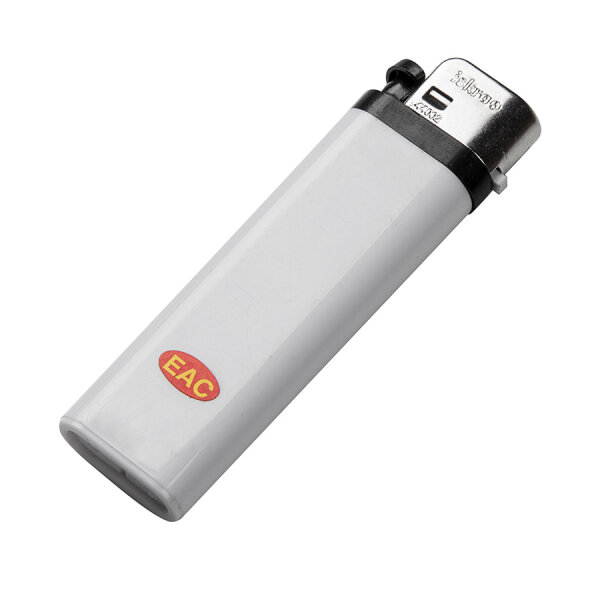 В связи с регламентом Таможенного союза на всех зажигалках с одной стороны наклеен стикер EAC