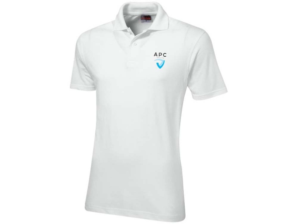 Рубашка-поло First. Воротник 1х1. Обшивка внутри воротника. Мужская и детская модели с 2 пуговицами, женская - с 4 пуговицами. Пуговицы с гравировкой в тон. Пике, 100% хлопок. 160 г/м2. Оплачивается только настройка оборудования на весь тираж.