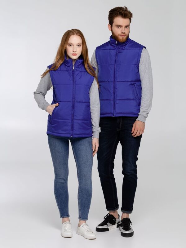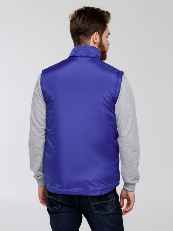 Воротник-стойка, скругленный низ, два наружных кармана на молнии и один внутренний на липучке. Застежка-молния в тон жилета. Для удобства нанесения логотипа можно частично отстегнуть подкладку.