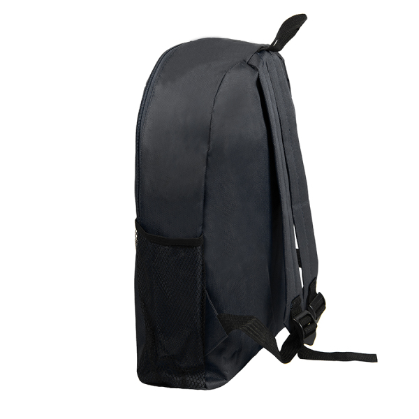 Легкий промо-рюкзак из прочного полиэстера 600D с одним основным отсеком и внешним карманом на молнии. Два боковых кармана из сеточки на резинке добавят места для бутылочки с водой или хранения мелких предметов. Регулируемые мягкие лямки помогут сделать рюкзак с вещами почти невесомым.