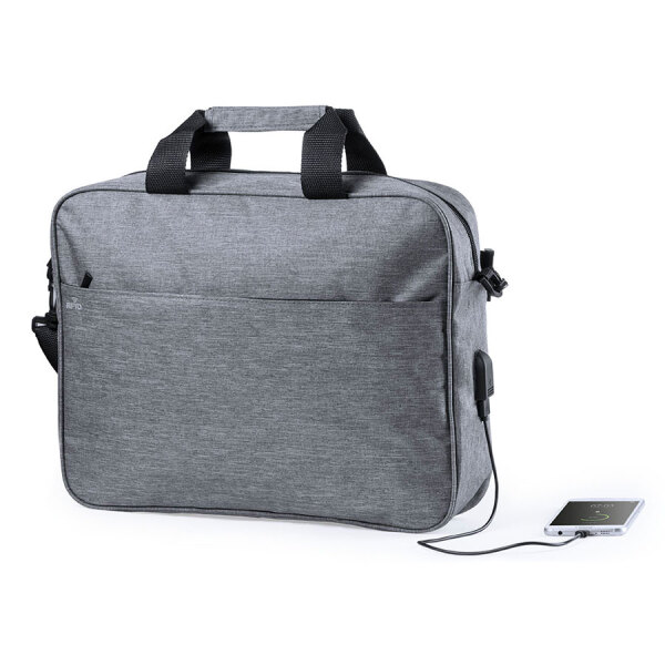 Сумка для документов с фактором их защиты. Внутренний карман с RFID защитой, которая оберегает данные кредитных карт и прочих девайсов от несанкционированного доступа. Прочный полиэстер 300D. Усиленные ручки. Основное отделение с USB-коннектором, на молнии (пауэрбанк не входит в комплектацию).